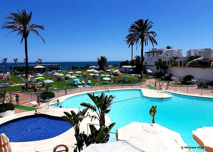 The beachfront Villacana Playa Silvia is located a 15-minute ride from Iglesia Mayor de la Encarnacion and boasts a swimming pool provided on a terrace for a pleasant stay. Offering an outdoor pool views, this 1-bedroom villa invites guests to visit the air zoo "Selwo Aventura", located a 10-minute ride away.